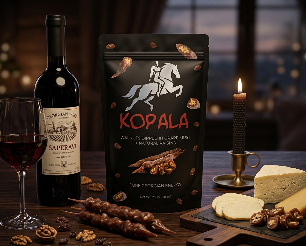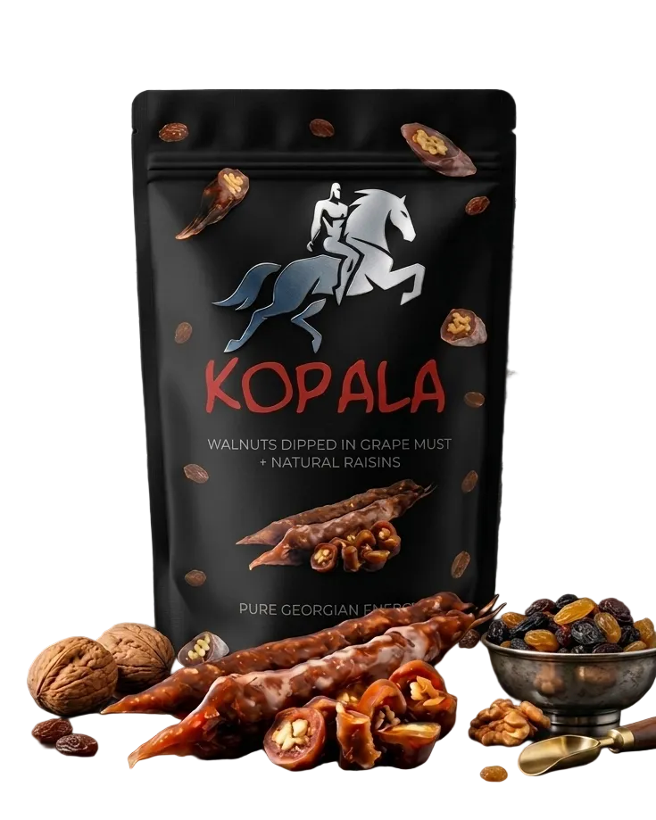 Born from ancient mountain traditions, our Churchkhela is a natural masterpiece of energy. Pure grape must and premium walnuts, slow-cured to perfection for a taste that transcends time